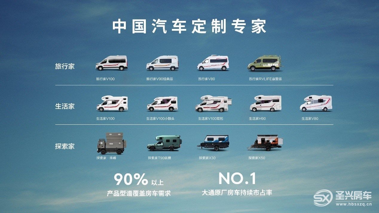 作為國(guó)內(nèi)房車領(lǐng)域的領(lǐng)軍品牌,上汽大通MAXUS到目前為止推出了生活家、旅行家與探索家三個(gè)系列,打造出多款原廠全品類房車選擇,產(chǎn)品型譜覆蓋90%以上房車需求,能夠滿足不同人群對(duì)于車型的需求。上汽大通MAXUS首款皮卡房車探索家T90縱橫以及生活家V100系列、旅行家V100系列、旅行家RVLIFE露營(yíng)版等高品質(zhì)原廠房車,助推品牌原廠房車1-9月位居B型房車細(xì)分市場(chǎng)第一,其中,9月單月銷量位居第一,市占率高達(dá)18%, 1-9月累計(jì)銷量位居第一,市占率高達(dá)15%,寬體輕客B型房車細(xì)分市場(chǎng)位居第一,市占率高達(dá)21%,用數(shù)據(jù)說話,用實(shí)力持續(xù)引領(lǐng)原廠房車市場(chǎng)。