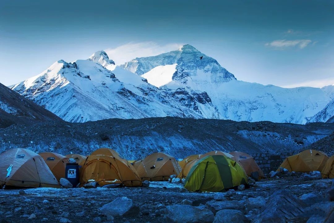 第二天,珠峰上的天空湛藍。