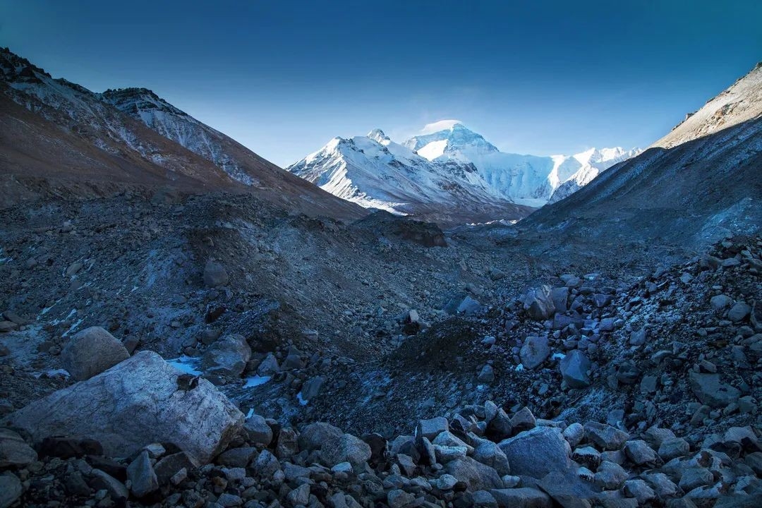 楊姐背上攝影器材,沿著溝溝坎坎的石頭路,向著珠峰腳下的絨布冰川方向前進,拍下珠峰的壯闊風景。由于氣溫比較低,就沒有往更近的地方前進,也留下了一絲絲遺憾。