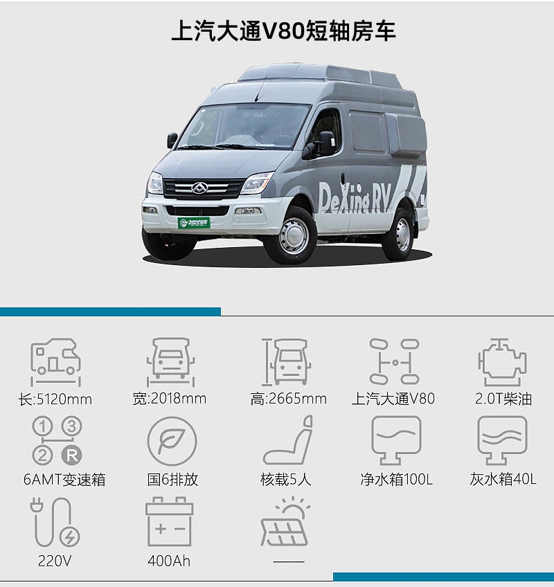 基于上汽大通V80短軸底盤(pán)打造,動(dòng)力上搭載2.0T柴油發(fā)動(dòng)機(jī),最大功率102kW,139馬力,峰值扭矩330牛·米,與其匹配的是6AMT變速箱,C2本就能駕馭。上汽大通V80采用承載式車(chē)身結(jié)構(gòu),相比非承載車(chē)身結(jié)構(gòu)的貨車(chē)底盤(pán),前者舒適性更高,非常適合改裝B型房車(chē)。
