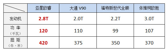 亞星歐睿房車排放標(biāo)準(zhǔn)全面升級國六,新車型發(fā)動機(jī)功率達(dá)到120千瓦,扭矩達(dá)到420?!っ祝壳霸谕愋偷妆P房車中處于領(lǐng)先位置。具體參數(shù)見下圖。