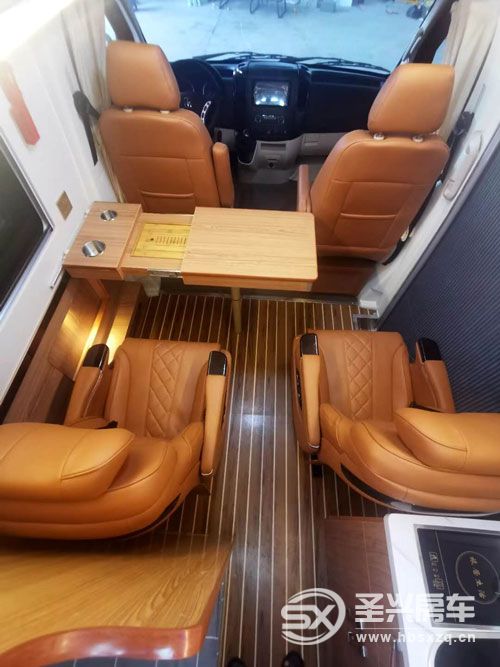 整體4座后橫床設(shè)計(jì),布局采用了2+2,駕駛艙獨(dú)立座椅,后排雙座,寬大的軟包皮質(zhì)沙發(fā)配備三點(diǎn)式安全帶,茶色隱私車窗,高端布質(zhì)擋簾,舒適且盡顯奢華。