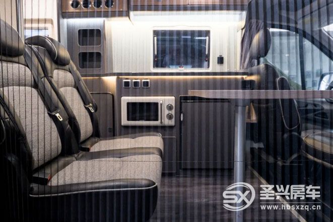 因為空間有限,想要寬敞的空間合理的設計,這款車將會客區、室內廚房區、戶外廚房、儲物柜的空間進行了合理的融合,并呈現出舒適的審美設計。