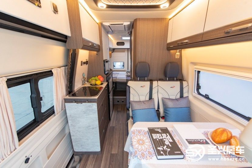 會(huì)客區(qū)安裝了單排設(shè)計(jì)的沙發(fā)卡座和可移動(dòng)帶旋轉(zhuǎn)副桌板構(gòu)成,副駕駛座椅可以選轉(zhuǎn),將副駕駛座椅向后旋轉(zhuǎn),與后排沙發(fā)形成對(duì)坐模式,在日常家庭聚會(huì)或商務(wù)會(huì)談時(shí)都很方便。當(dāng)您商務(wù)會(huì)談是還可以拉上駕駛室和過(guò)道的高質(zhì)量全車(chē)隱私拉簾,保證您的隱私安全。夜晚需要休息時(shí),沙發(fā)卡座可以和餐桌折疊拼成一張臨時(shí)床鋪,能夠容納一名成年人自由躺臥。在座椅上方安裝了儲(chǔ)物吊柜,方便存放一些平時(shí)經(jīng)常使用的小型物品,方便拿取。在儲(chǔ)物吊柜的下方安裝了一扇外推窗,確保了此處的通風(fēng)換氣和采光效果。