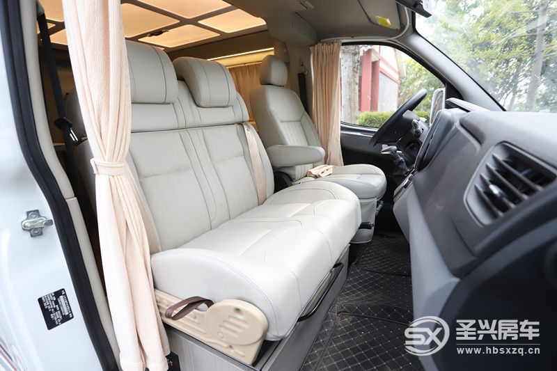 這款房車由最新一代大通V80輕客車型改裝,此前一直為大家詬病的儀表盤在中控位置的缺點,如今已經完全回歸到了方向盤下方,這樣看起來舒服多了。整個中控臺也偏向于簡約設計,保留了中控大屏和一些實體按鍵。駕駛室為2+1的座椅排布。動力總成方面,搭載的是一款2.0T柴油渦輪增壓發動機,最高功率102kW,傳動系統匹配的還是6AMT變速箱,最高輸出300N·m的扭矩。之前試用過這款底盤的老用戶都知道,它采用前置前驅的形式,油耗總體來說比較經濟,百公里約為8-10L之間,80升油箱可以提供還算不錯的續航能力。