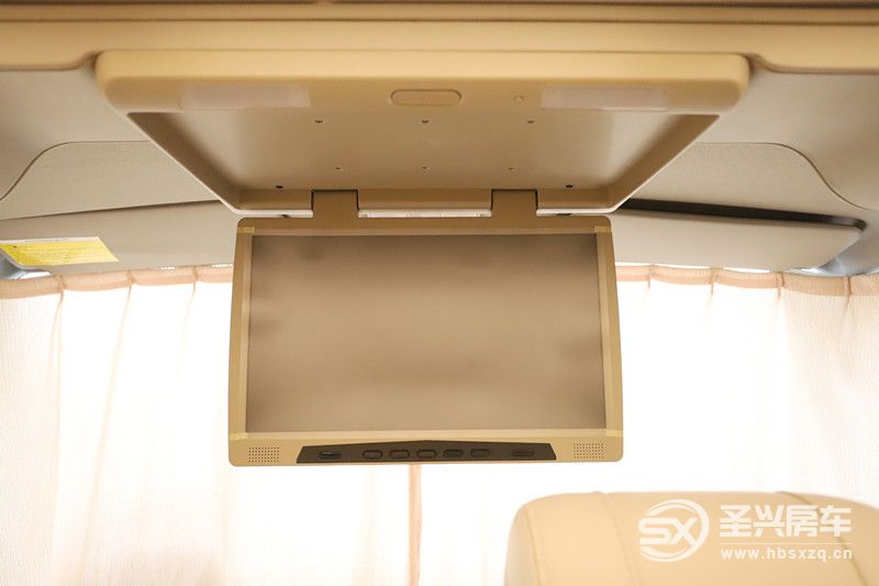 駕駛室頂部是一款19英寸吸頂式電視機(選配),可連接無線WiFi收看網絡電視,平時收回車頂不占用車內空間。