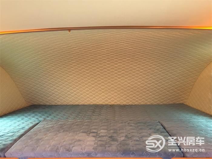 休息區在車內共設有三處:前置額頭雙人床、后置尾部雙人床、會客區拼接雙人床。設有6臥可供休息。同時配備了行車空調、駐車空調、12V插座、閱讀燈等配置。