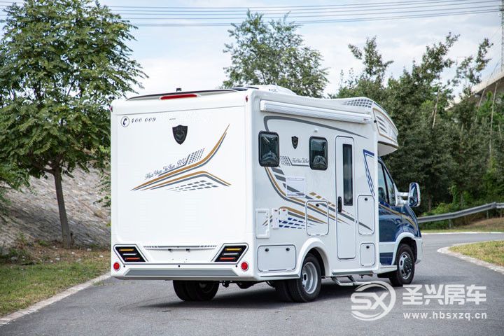 帥氣的外觀就是很多車友對其的一印象。時尚的小額頭造型與依維柯英俊的面孔搭配健美的身材一樣讓人著迷,寶藍色的車頭與科幻風的車身拉花配色更是錦上添花。外觀已如此用心,下面就一起了解這臺房車的細節。