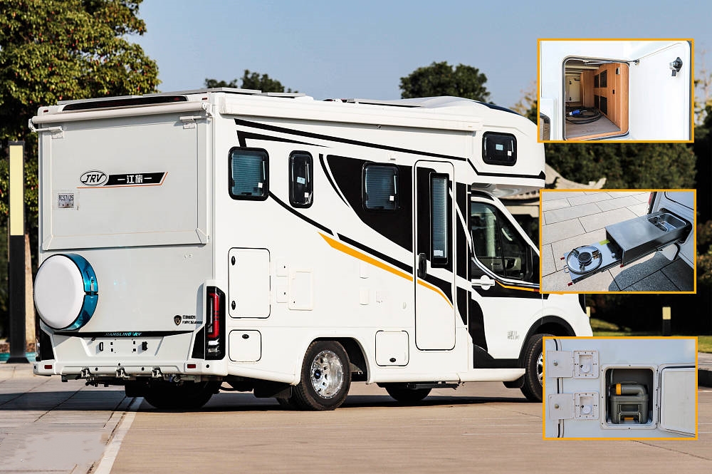 外部配置有德國(guó)斯彼得曼電動(dòng)無(wú)支架3.5M遮陽(yáng)棚、東泰電動(dòng)踏步、外置柴油抽拉灶、貫通式儲(chǔ)物箱,通220V取電插座,外接注水口、戶(hù)外LED照明以及800W太陽(yáng)能板等戶(hù)外常用設(shè)備。