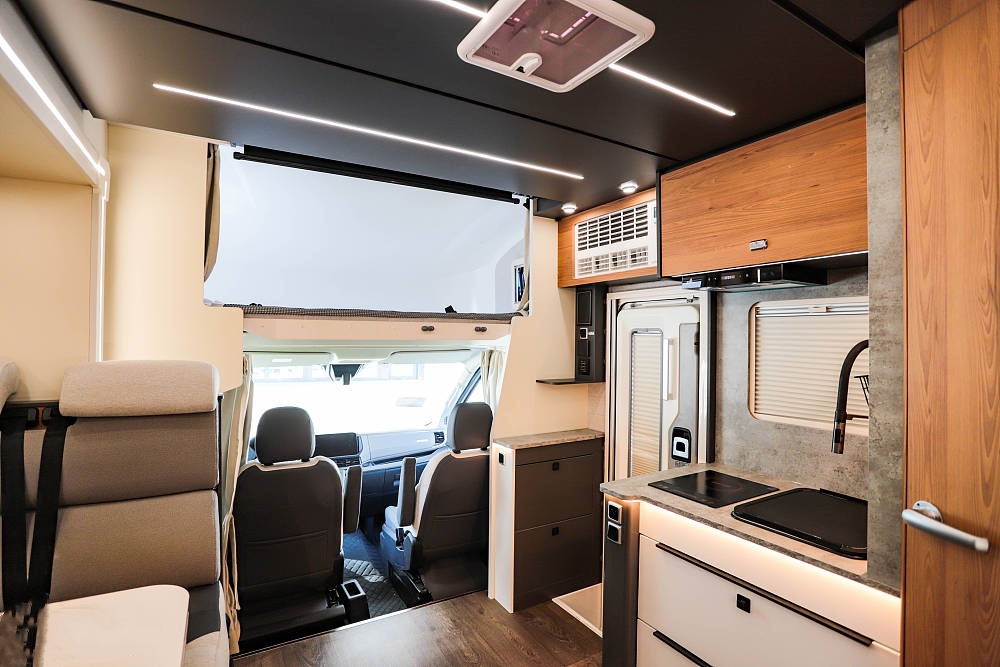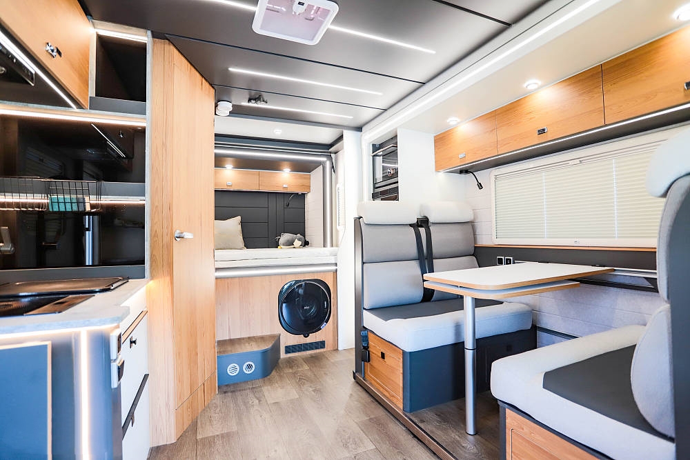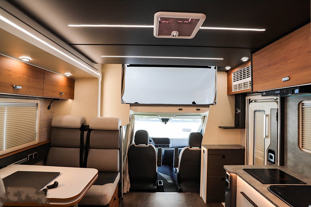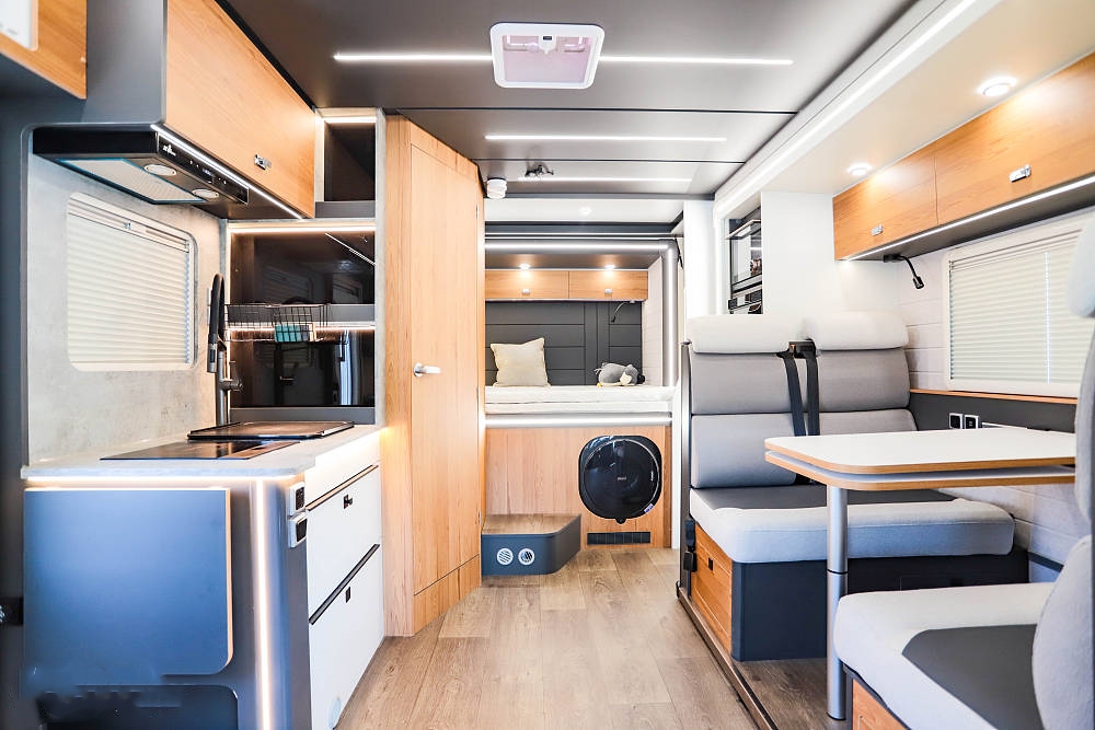 設(shè)計(jì)拓展機(jī)構(gòu)的妙處在于,駐車(chē)時(shí)車(chē)廂面積得以最大化拓展。只需按鍵操作拓展艙便徐徐伸出,將房車(chē)內(nèi)部空間瞬間打造成一個(gè)寬敞舒適的居家環(huán)境。此時(shí),會(huì)客區(qū)域、開(kāi)放式廚房以及床鋪休息區(qū)都擁有了更多的活動(dòng)空間,仿佛將家搬到了戶(hù)外。而當(dāng)駕駛或泊車(chē)之時(shí),只要一鍵收回拓展艙,就能緊湊如常,絲毫不影響行駛或停靠的便捷性。
