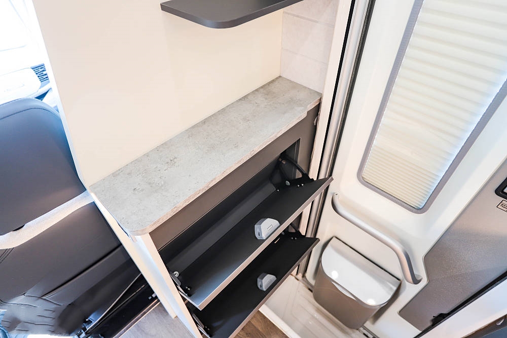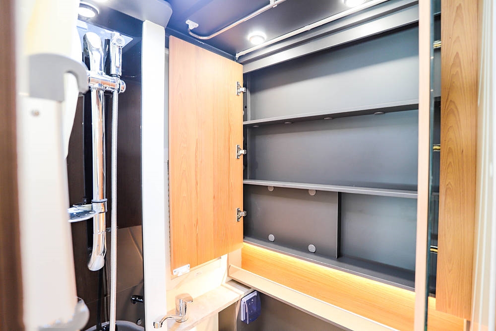 進(jìn)門(mén)處的右手邊貼心的放置了兩層鞋柜、極大的提升了生活便利性,這里充當(dāng)了車(chē)廂的“入戶(hù)”玄關(guān)功能,在這里可快速完成內(nèi)外鞋物的轉(zhuǎn)換,保持車(chē)廂內(nèi)的整潔衛(wèi)生。