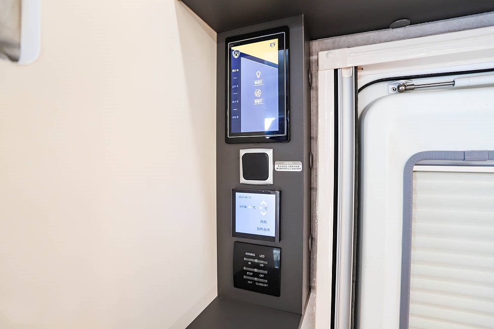 48V KME空調(diào)和集成式觸控面板及控制器也被放置在這一區(qū)域,集成式觸控面板可統(tǒng)一控制車(chē)廂燈光、設(shè)備、水路、電器以及加熱器等設(shè)備,直觀又方便。