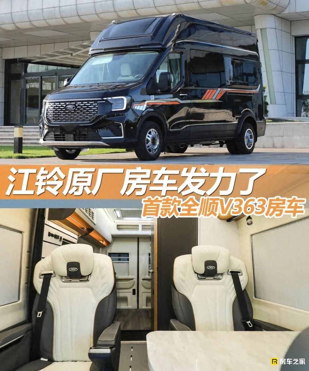 我個人覺得B型房車采用這種B C的設計方式是最實用的,既能保證內高空間,又不會覺得整車太過于笨重。江鈴這款大海牛V363房車加上超高頂的模具,整體沒有違和感,甚至我覺得還特別協調。整車采用全黑車漆 明黃色的車身腰線彩條裝飾,簡單大氣。作為江鈴房車首款跨界型房車,這外觀顏值設計,看來原廠房車開始發力了!