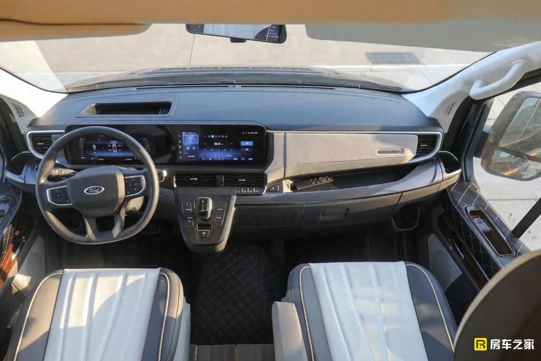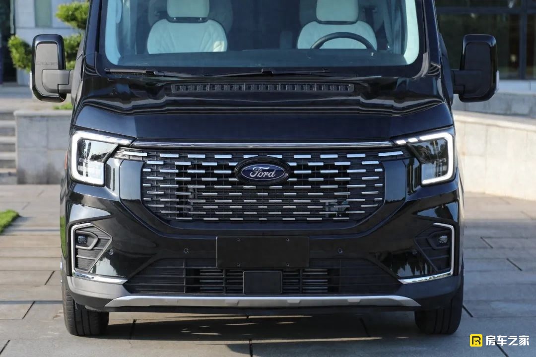 江鈴福特全順T8這款底盤確實是一款改裝房車的好坯子,從前臉來看,這款車采用的是福特全順輕客版本的點陣式進氣格柵,所以它的外形更加精致,甚至說從整體房車外形來看有一點商務的高級感。除了近期格柵以外,兩側的C型日行燈也是新車的標配,前唇位置加入了一些鍍鉻的裝飾條,整車還多了一些精致感。