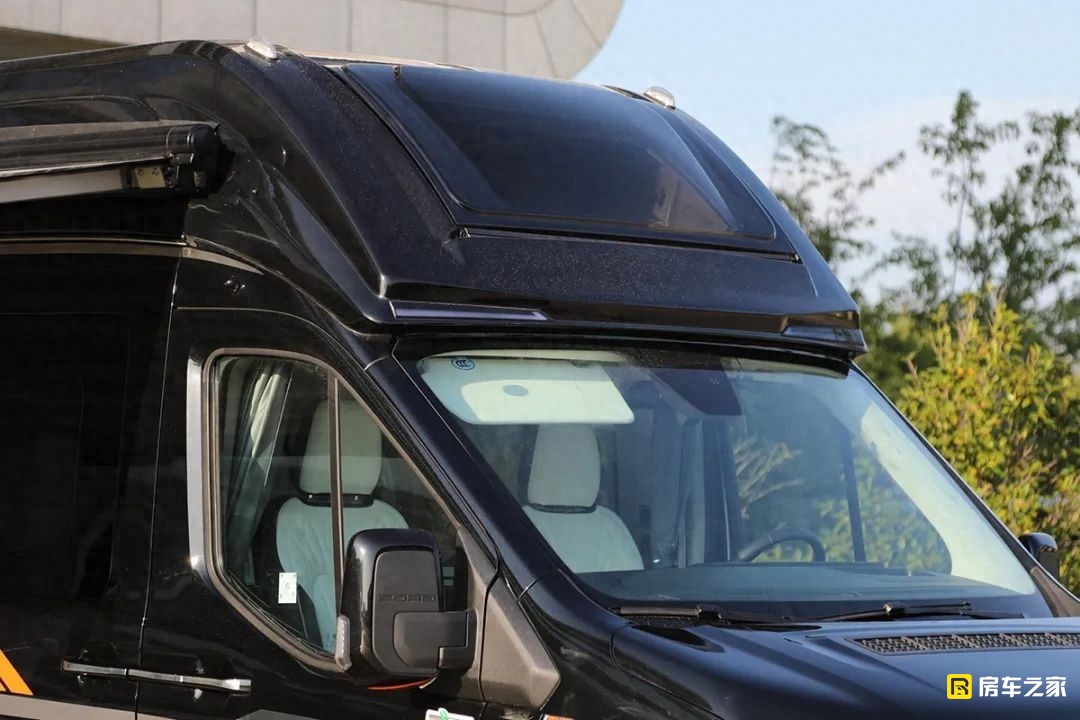 駕駛室上方額頭位置的大弧形天窗尺寸達到了1105×548(mm),從車外看完全是熏黑的,車內看外面比較清晰,最主要是車內的采光要好上不少。