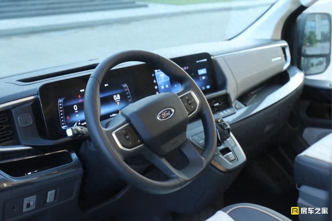 來到這款車的駕駛室,看過了依維柯歐勝、大通V90、福田圖雅諾等等底盤,再回頭看這款車的駕駛室,它已經不再只是滿足日常實用價值了,基本上全面實現乘用車化的座艙,整個中控臺的質感更好,更富有層次感。12.3英寸的雙聯屏,誰看了都迷糊。整個屏幕的質感和顯示清晰度非常高,中控屏流暢度也不錯。
