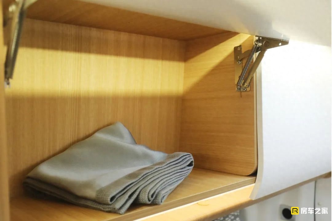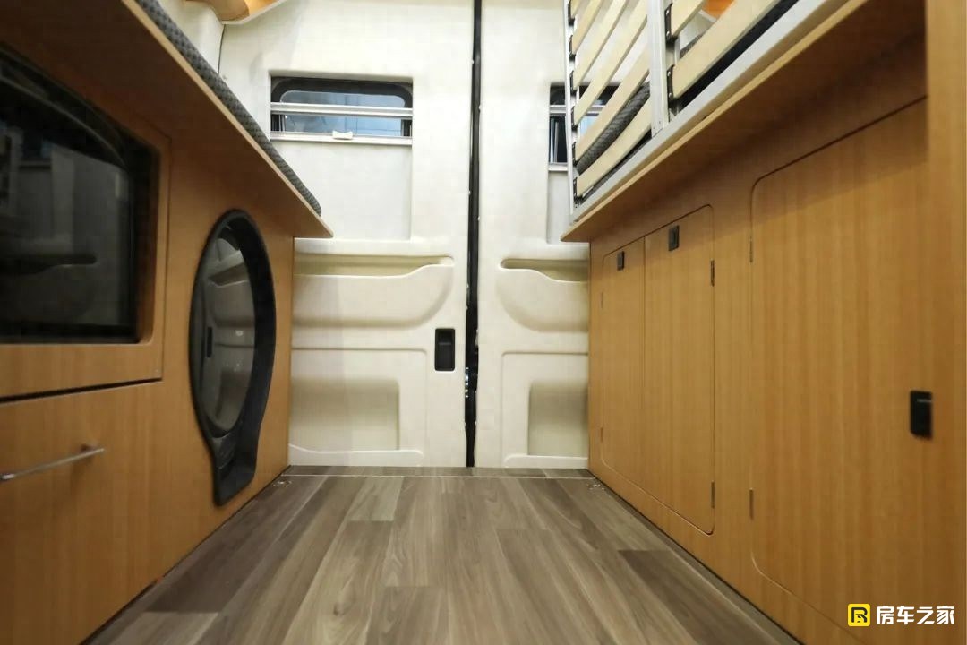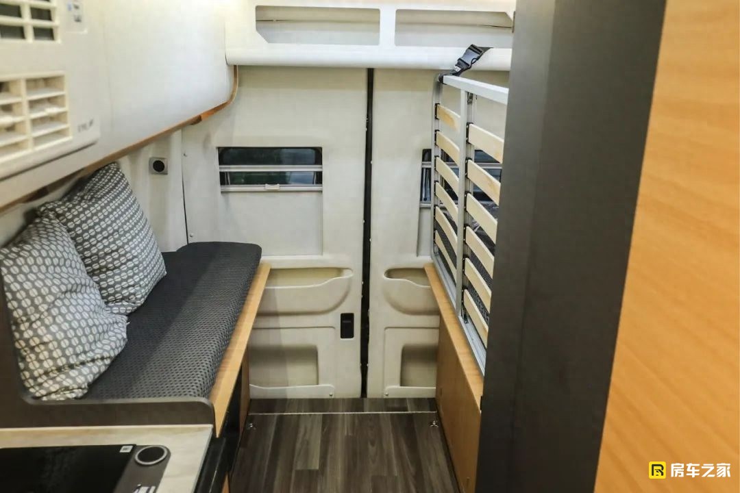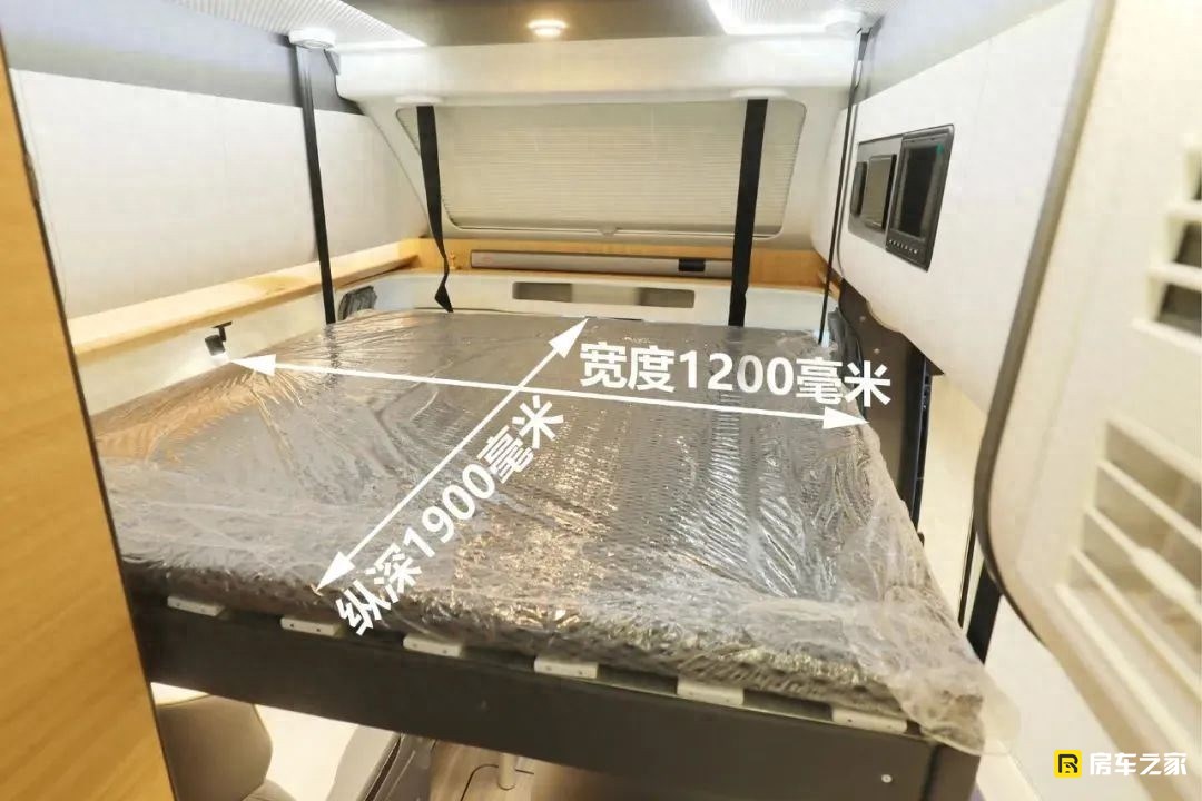 以往B型房車往往比較難以實現兩張大床的難題,在這款車上實現了。這張床位的最大尺寸為1900×1200(mm),可以滿足一大人一兒童就寢。