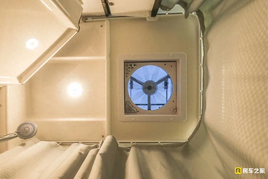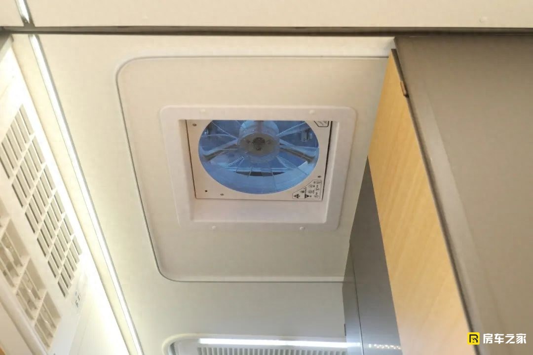 后床區域不僅安排了頂部的天窗,也搭配了一款換氣扇,后方的通風和換氣基本都解決了。