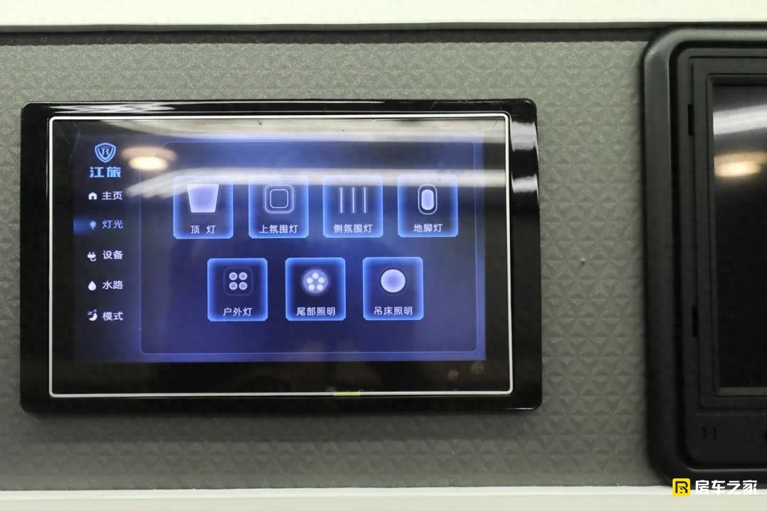 車內的所有設備幾乎都集成于這款7英寸車機系統之中了,涵蓋了燈光、設備、水路等等,便于實時查看。說到這款車的能源方面,標配的是48V 205Ah的電池組(約10度電),3000W逆變器和480W頂部太陽能電池板,另外車載48V雙行車發電機也可以快速的補充虧電下的充電?;旧习凑諏嶋H的需求來看,出廠的標配基本就算是高配了。