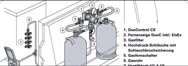 上圖是房車燃氣系統的管路示意圖,可以看到氣壓調節器的作用是非常重要的,從氣罐出來的氣體必須先連接到氣壓調節器,通過氣壓調節器之后再分配,然后輸送到各個使用燃氣設備的端口,所以燃氣調節器就像是一個忠誠的衛士一樣,始終在一線站崗。